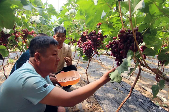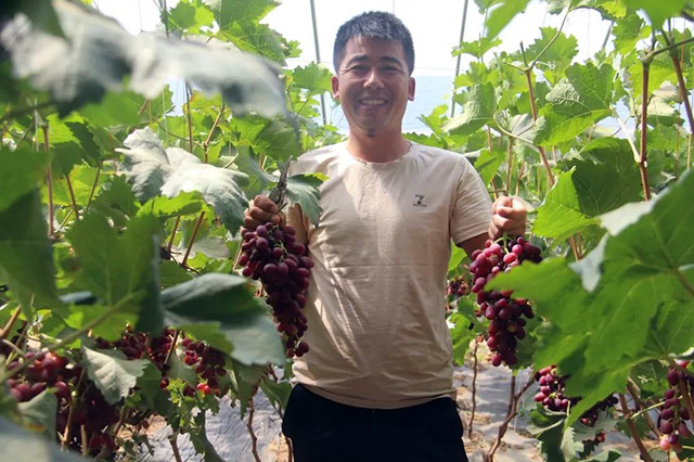 小葡萄串起致富“金串串”。“鄉親們如果想種植葡萄,我可以免費提供技術,幫助大家實現大棚一年四季果實滿棚。”正午時分,天氣酷熱,薛飛飛又扎進大棚,侍弄著他的“寶貝”,實現著自己的致富夢也是全村的致富夢。