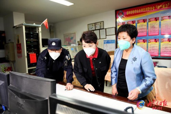 6月13日下午,王莉霞認真查看錫林浩特大酒店監控錄像,要求加強隔離點規范管理。內蒙古日報融媒體記者韓卿立攝