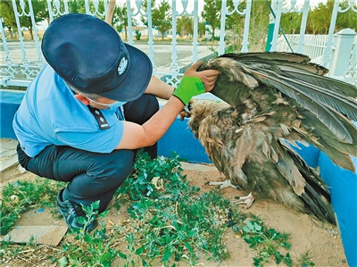 民警救治受傷的禿鷲。