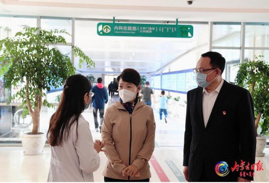 王莉霞還與錫林郭勒盟中心醫院傳染病區的醫生和患者進行了視頻連線。(內蒙古日報社融媒體記者 章奎)