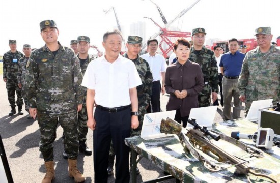 7月30日,自治區黨委書記、內蒙古軍區黨委第一書記孫紹騁,自治區主席、自治區國防動員委員會主任王莉霞,來到內蒙古軍區綜合訓練場出席“八一”軍事日活動。記者袁永紅攝