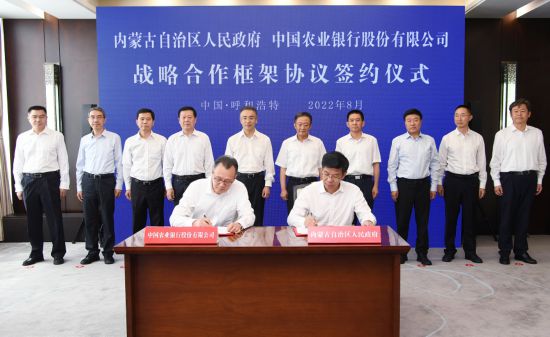 8月2日,自治區政府與中國農業銀行在呼和浩特簽署戰略合作框架協議。自治區黨委書記孫紹騁,中國農業銀行黨委書記、董事長谷澍見證簽約。