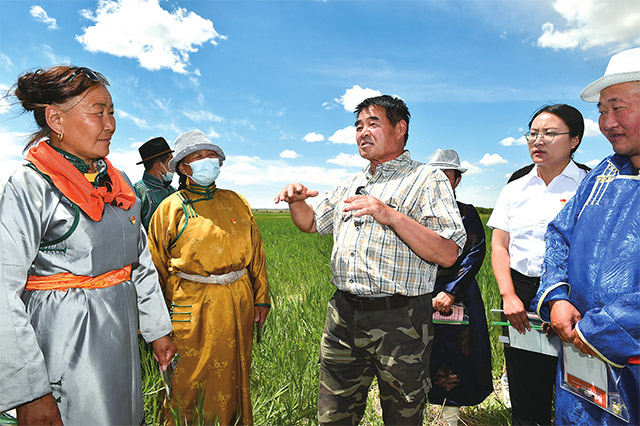 8月4日,廷·巴特爾在自家的牧場為十幾名當地牧民傳授致富經。錫林郭勒盟阿巴嘎旗洪格爾高勒鎮薩如拉圖雅嘎查改革先鋒廷·巴特爾每年為2萬多名牧民授課,并且帶領牧民成立牧業股份制公司,發展牧區旅游業、生態養魚業等,拓寬牧民增收渠道。記者 馬建荃 攝