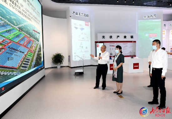 8月9日下午,王莉霞在隆基光伏全產業鏈項目調研。內蒙古日報社融媒體記者韓卿立攝
