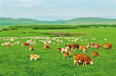 牛羊在錫林郭勒盟烏拉蓋草原悠閑覓食。錫林郭勒盟大力推進“減羊增牛”戰略,讓草原增綠、牧民增收。記者 馬建荃 攝