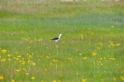 長腿鷸在赤峰市巴林左旗的草原上覓食。在內蒙古,良好的草原生態環境已經成為野生動物的樂園。李富 攝