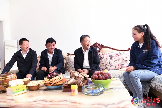 孫紹騁來到杭錦旗獨貴塔拉鎮道圖嘎查,親切看望治沙先進個人敖特更花。內蒙古日報社融媒體記者 袁永紅攝