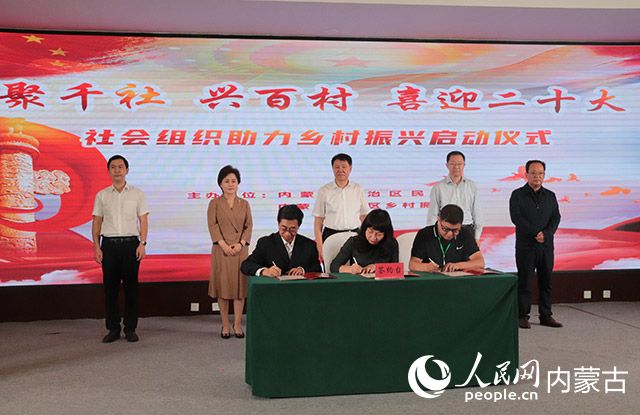 6個社會組織負責人和3個接受幫扶旗縣領導代表現場簽約。人民網 劉藝琳攝
