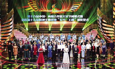 8月31日晚,第十九屆中國·內蒙古草原文化節閉幕式暨全區第十五屆精神文明建設“五個一工程”頒獎儀式在內蒙古藝術劇院舉行。記者 王磊 攝