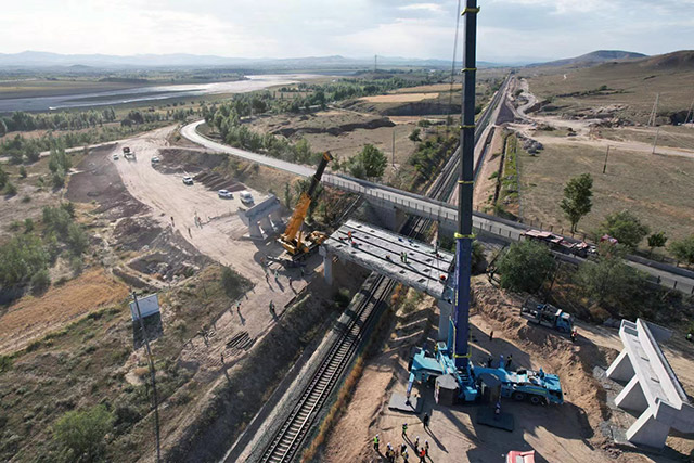 K594+930公鐵立交橋是內蒙古自治區赤峰市境內連接巴林右旗和林西縣的交通要道,上跨集通鐵路箱梁的成功架設,標志著集通鐵路電氣化改造工程又一重大風險卡控點取得突破。屆時,該公鐵立交橋將由一孔增至兩孔,集通鐵路也將由一股道增至兩股道,運能將得到大幅提升。(王秋明)