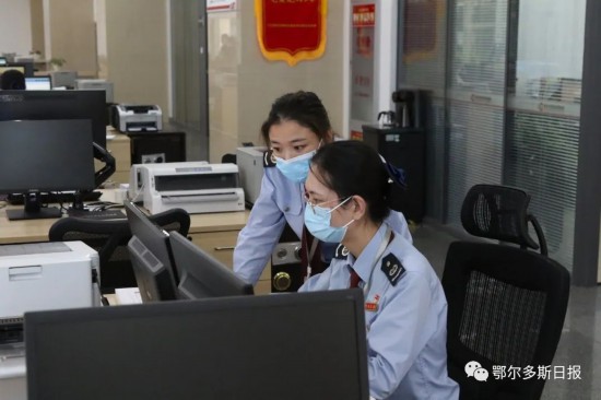 康巴什區政務服務中心工作人員正在辦理業務。(圖片來源:康巴什區融媒體中心)
