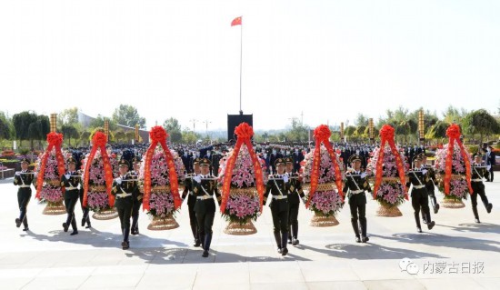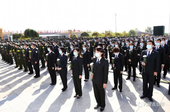 9月30日上午,烈士紀念日向人民英雄敬獻花籃儀式在呼和浩特舉行。內蒙古日報社融媒體記者 袁永紅 攝