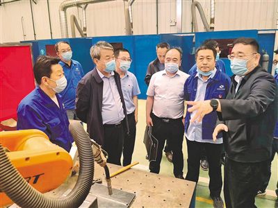鄔興宇(右一)在內蒙古第一機械集團有限公司工業(yè)機器人焊接實訓基地調研。