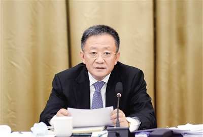 十月十七日,內(nèi)蒙古代表團團長、自治區(qū)黨委書記孫紹騁參加內(nèi)蒙古代表團討論黨的二十大報告時發(fā)言。 記者 袁永紅 攝