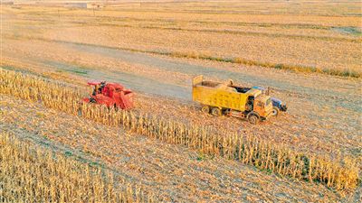 眼下,呼和浩特市托克托縣99.17萬畝玉米迎來收割期。金色的田野里,村民們駕駛著收割機來回穿梭,正搶抓連日來晴好天氣進行收割。