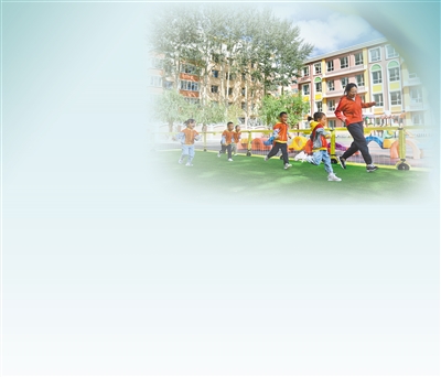 烏蘭察布市直屬幼兒園教師帶領小朋友們在室外進行游戲。十年來,內蒙古大力推進學前教育公益普惠發展,大力發展公辦園,積極扶持普惠性民辦幼兒園發展,越來越多家庭能夠就近享受普惠性學前教育資源。唐璇博 攝