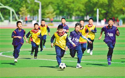 鄂爾多斯市杭錦旗億利東方學校的小學生們在足球場上積極拼搶。截至今年9月,內蒙古共建成國家級校園足球特色學校1286所,培育了國家級校園足球特色幼兒園446所。教育部認定并命名內蒙古全國青少年校園足球試點縣(區)9個,全國青少年校園足球“滿天星”訓練營名單5個。記者 王磊 攝