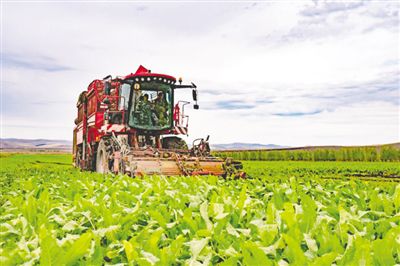 呼倫貝爾市額爾古納市種植的12.11萬畝甜菜喜獲豐收。 譚玉嬌 攝