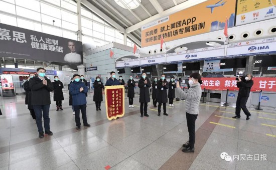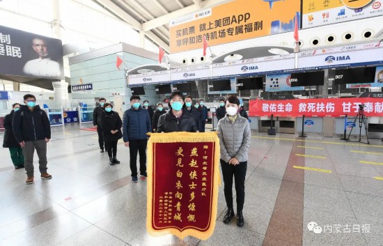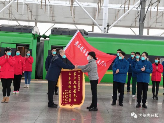 11月10日,王莉霞為即將離開呼和浩特市的廣東省、重慶市援呼醫療隊送行。截至目前,江蘇、浙江、天津、河北、陜西、黑龍江、廣東、重慶八省市援呼醫療隊2000余名醫護人員已經全部踏上歸程,王莉霞逐一為醫療隊送行并頒授錦旗。