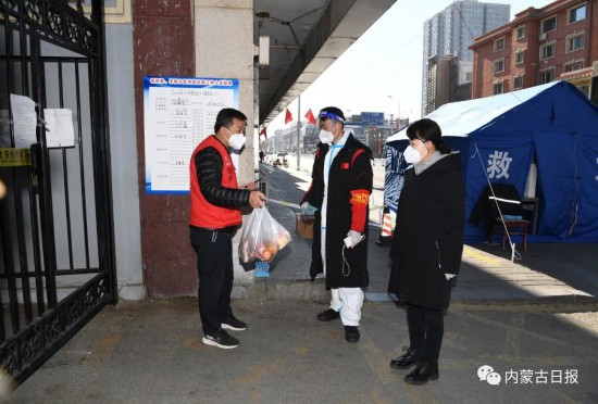 11月15日,王莉霞在祥泰花園小區(qū)了解群眾生活物資保障情況。內(nèi)蒙古日?qǐng)?bào)社融媒體記者韓卿立攝