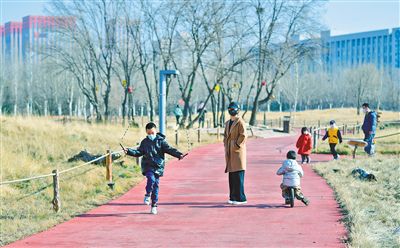 市民在呼和浩特市小草公園游玩。近年來,呼和浩特市建成的綠地公園逐年增多,2021年,全市建成口袋公園和社區(qū)游園186處、城市綠道220公里,在全國36個(gè)重點(diǎn)城市中綠化清秀指數(shù)排名第2位。 記者 王磊 攝