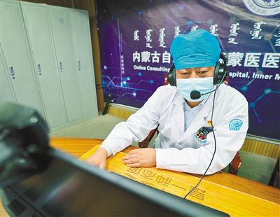 內(nèi)蒙古國際蒙醫(yī)醫(yī)院醫(yī)生免費(fèi)為患者提供線上咨詢與診療服務(wù)。據(jù)了解,2019年開始,內(nèi)蒙古多家公立醫(yī)院陸續(xù)推出“互聯(lián)網(wǎng)+護(hù)理”服務(wù),為出院患者或罹患疾病行動(dòng)不便的特殊人群提供了便利服務(wù)。內(nèi)蒙古多家醫(yī)院開通的云診室,受到群眾的普遍歡迎。記者 王鵬 攝