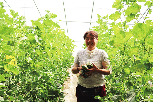 在十二連城鄉溫室大棚,香瓜喜獲豐收。 張憲麗 攝