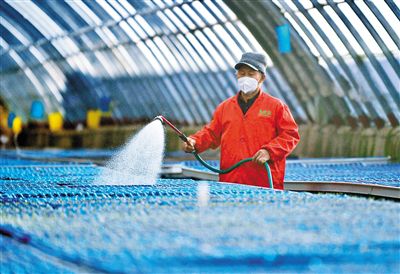 內(nèi)蒙古蒙苗農(nóng)業(yè)科技有限公司育苗基地工人在給幼苗澆水。該公司工人抓緊時間精心培育,確保為周邊盟市種植戶提供優(yōu)質(zhì)蔬菜幼苗。記者 孟和朝魯 攝