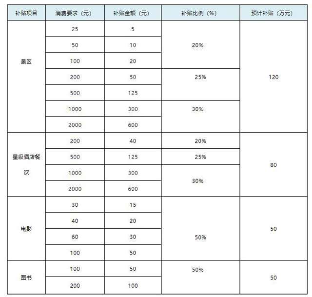 本次活動從1月初開始至3月底結束,由市財政安排補貼資金300萬元,市新華書店配資20萬元,共發放促進文旅消費補貼資金320萬元。其中,景區冬季旅游產品120萬元、星級飯店餐飲80萬元、電影50萬元、圖書70萬元。