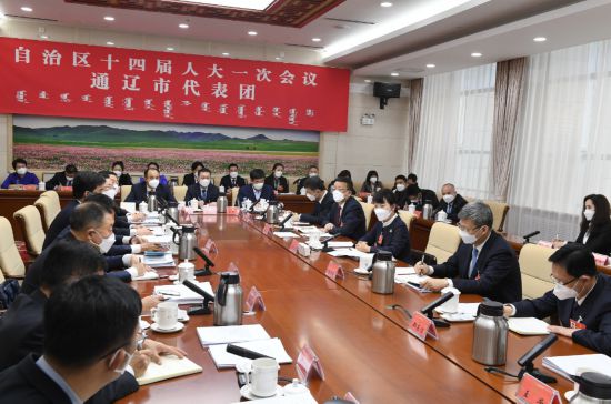 1月14日上午,自治區黨委副書記、自治區主席王莉霞參加通遼市代表團審議,與代表們一起討論交流。