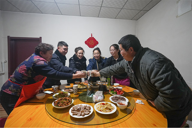 第二天,徐乃超和李文娜邀請周邊牧民一同到警務室過年,在歡樂祥和的氛圍中他們度過了一個別樣的新年。