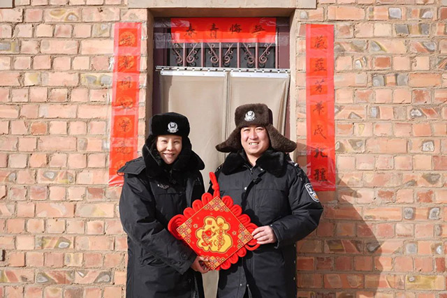 春節臨近,徐乃超陪同妻子李文娜做完產檢,購置好年貨后,帶上岳母一起奔赴邊疆。盡管邊境的風沙沒有停歇,但他們一家人把警務室裝扮的格外溫馨。