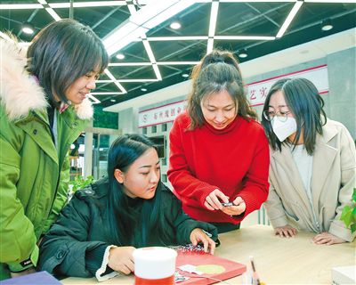女青年正在“布絲瑰”創業基地研究產品創意。