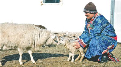 在錫林郭勒盟西烏珠穆沁旗浩勒圖高勒鎮巴彥額日和圖嘎查,牧民敖特根巴特爾已經接了70多只羊羔。照日格巴圖 攝