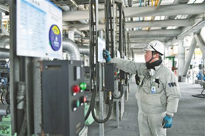 內蒙古鑫元硅材料科技有限公司10萬噸顆粒硅項目投產,工作人員正在巡檢設備。