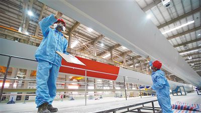 包頭明陽新能源智能制造產業園葉片生產廠房內繁忙有序。