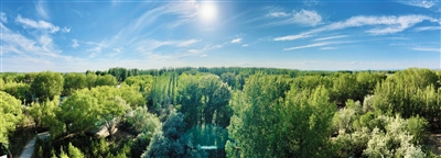 初夏時節,位于巴彥淖爾市臨河區烏蘭圖克鎮的國營新華林場內綠樹掩映、鳥鳴聲聲,鄰近的湖泊波光粼粼,微風吹過,溫潤清涼。