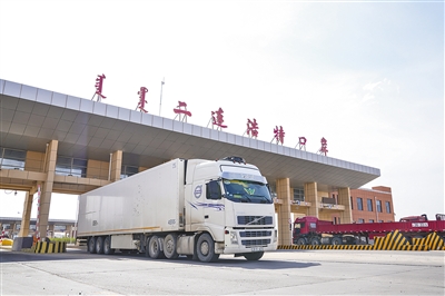 連日來,二連浩特公路口岸一片繁忙,滿載著新鮮果蔬產品的冷藏集裝箱卡車辦理完通關手續,駛出智能卡口,通過中蒙農產品“綠色通道”快速通關進入蒙古國境內。