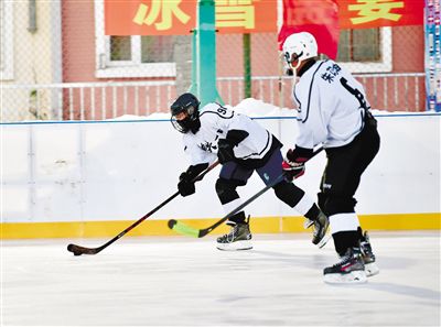 呼倫貝爾市海拉爾區鐵路第一中學開展的冰球項目已成為該校冰雪項目中的一大特色。記者 孟和朝魯 攝