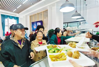 午餐時間,在興安盟烏蘭浩特市和平街辦事處和平街紅浦社區的長者幸福餐廳,老人們正在有序排隊打飯,濃濃的飯菜香味飄滿了房間。