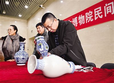 1月19日,內蒙古博物院文物鑒定專家正在為民間收藏愛好者鑒定藏品。當日,內蒙古博物院舉辦2024年第一期民間收藏文物公益鑒定活動,活動邀請自治區文博鑒定專家面向社會進行公益性鑒定咨詢。本次活動,共有9名民間收藏愛好者進行鑒定,鑒定藏品共計28件(套)。記者 王磊 攝