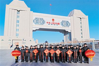 春節期間,滿洲里出入境邊防檢查站的民警堅守一線,他們在國門祝福祖國繁榮昌盛、國泰民安。記者 許敬 攝