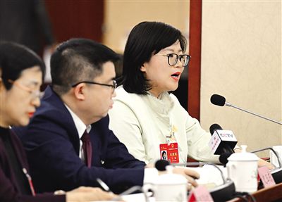 3月5日下午,全國人大代表王臻(右)在審議政府工作報告時建議,給予西部地區(qū)在科技人才資源配置上的更大支持,加大力度布局建設(shè)重點領(lǐng)域科研院所,解決西部地區(qū)科技人才短缺問題。記者 孟和朝魯 攝