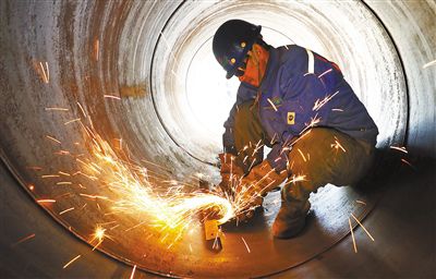 呼倫貝爾東北阜豐生物科技有限公司年產50萬噸氨基酸項目施工車間,工人正在進行設備安裝。劉偉 攝