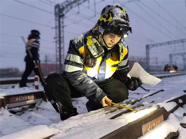 每年寒冬時節,零下30度的低溫透過衣服直往骨頭里鉆,為了保障旅客列車平穩運行,薛嬌帶領檢查工區的姐妹們不降標準,一寸一寸精確為線路設備“把脈問診”,一個“天窗”點下來,平均彎腰100余次,跪爬30余次,憑借著“1毫米不差,差1毫米不行”的較真勁頭,平均每月檢查設備100多公里,發現線路結構病害百余處,一步步保衛著旅客運輸安全底線。