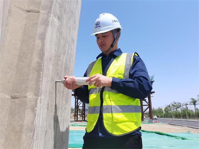 許許多多個夜晚,孫金龍自己貓著腰待在試驗室里擺弄著儀器設備,驗證著白天討論的一項項假想,通明的燈火記錄下了他忙碌的身影。“我在試驗室里從來不覺得寂寞,里面凝聚著我的熱愛和一個等待我探索的豐富宇宙。”每天對不同強度等級的混凝土進行電通量試驗檢測時,他發現所購買的儀器經常會出現正負極溶液滲漏問題,導致設備聯電燒壞,產生安全隱患,不僅維修費用高,還嚴重影響測試準確度。這個問題一直纏繞著他,為了保證設備白天的正常使用,每天下班,孫金龍都鉆進試驗室里一次次的嘗試,終于在一個深夜,清冷的玻璃窗上映照出他開懷的笑容,研發的“便攜式混凝土電通量檢測儀” 解決了所有的弊端,效率和精準度顯著提升,成為公司混凝土電通量檢測的一把“利器”。《一種便攜式混凝土電通量檢測儀及使用方法》取得了發明專利。