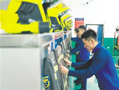 5月1日,在呼和浩特消防救援支隊特勤大隊一站,消防員們正在整理裝備,做好隨時出勤的準備。“五一”假期,該支隊部署力量在景區、商廈等人員密集場所開展勤務檢查及消防宣傳工作。記者 懷特烏勒斯 攝