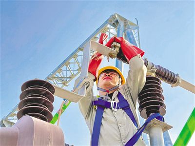 5月1日,工作人員在對電力設備進行測溫。內蒙古電力集團內蒙古超高壓供電公司開展變電站特巡、測溫工作,為節日期間蒙西主網安全穩定運行保駕護航。 記者 郭馨陽 攝