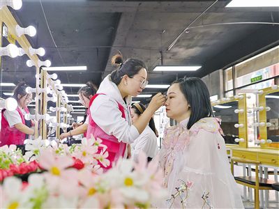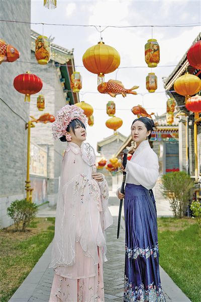 泉州簪花熱、曹縣馬面裙、新中式穿搭……走進(jìn)呼和浩特市玉泉區(qū)塞上老街旅游休閑街區(qū),隨處可見身著漢服的“簪花公主”們?cè)谂乃囆g(shù)照。古色古香的環(huán)境加上應(yīng)景的古典造型,這股在青年群體中興起的國風(fēng)國潮,形成了一道獨(dú)特的“風(fēng)景線”。記者 王磊 攝
