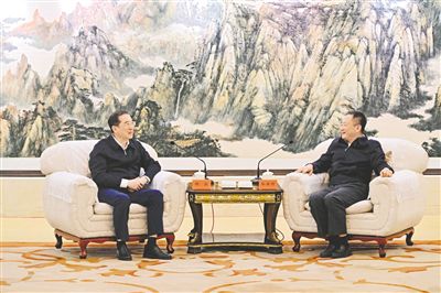 五月十六日,自治區(qū)黨委書記孫紹騁在呼和浩特拜會全國政協(xié)副主席、農(nóng)工黨中央常務(wù)副主席楊震。記者 馬建荃 攝